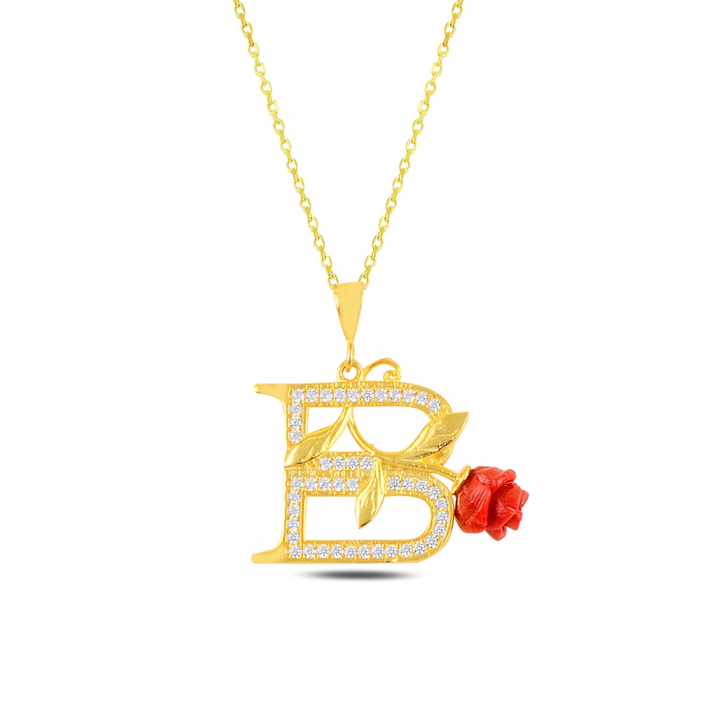 B Harfli Kişiye Özel Gül Tasarımlı Kolye
