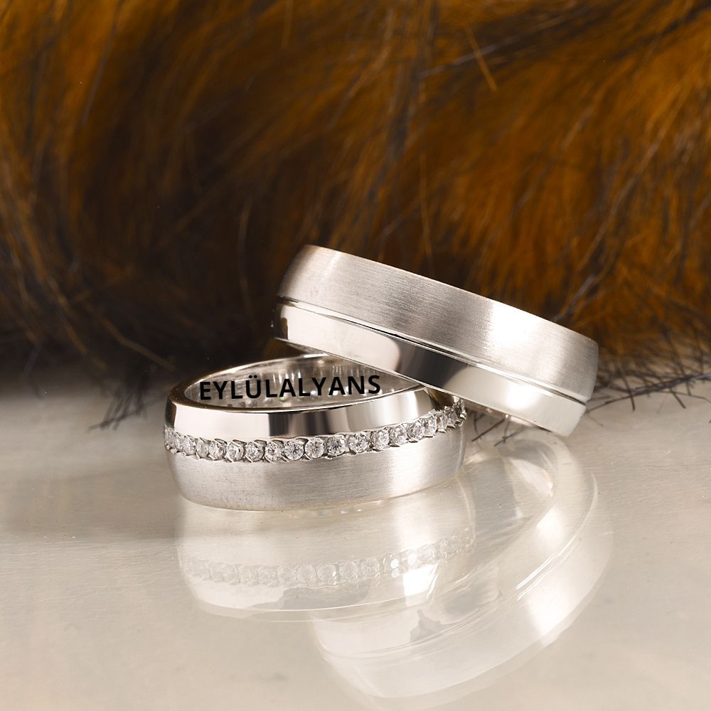 Bombeli Sade Çift Gümüş Alyans