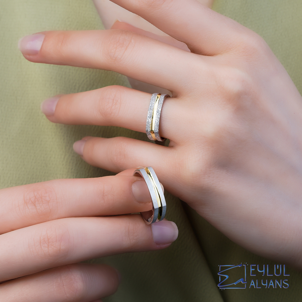 🔹 6 Milim Genişliğinde Kare Köşeli Gümüş Üzerine Gold Kaplama Alyans