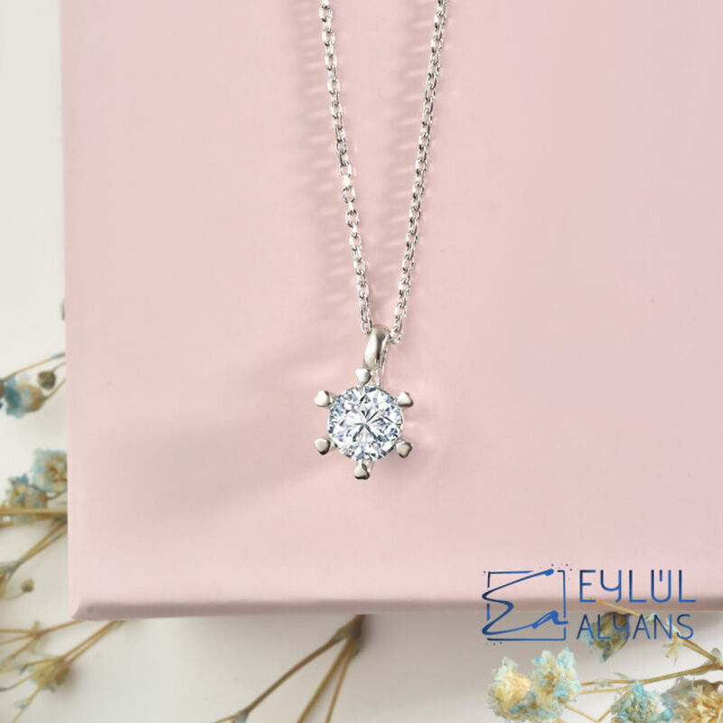 🔹 Pırlanta Modeli Gümüş Tektaş Kolye Modeli