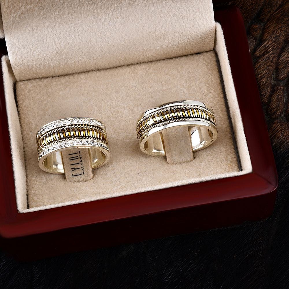 İnce Ve Kalın Örgülü Gümüş Alyans