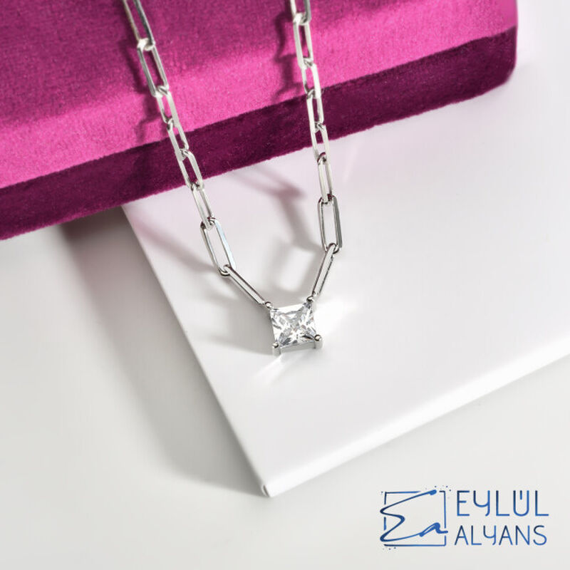 🔹 Lormont Pırlanta Modeli Kare Gümüş Kolye Modeli 2023
