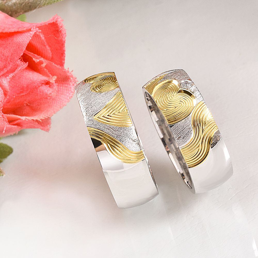 Parmak İzli Ve Kalpli Çift Yüzük Modeli