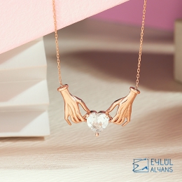 Rose Kalbim Ellerinde Modeli Gümüş Kolye