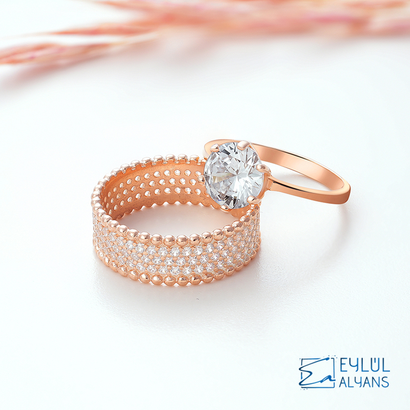 Rose Özel Mücevher Kombini Gümüş Tektaş Alyans