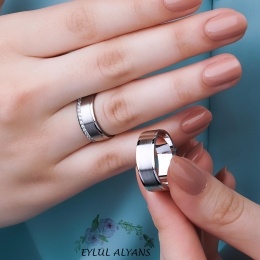 Siyah ve Beyaz Mat Tasarımlı Söz Yüzüğü